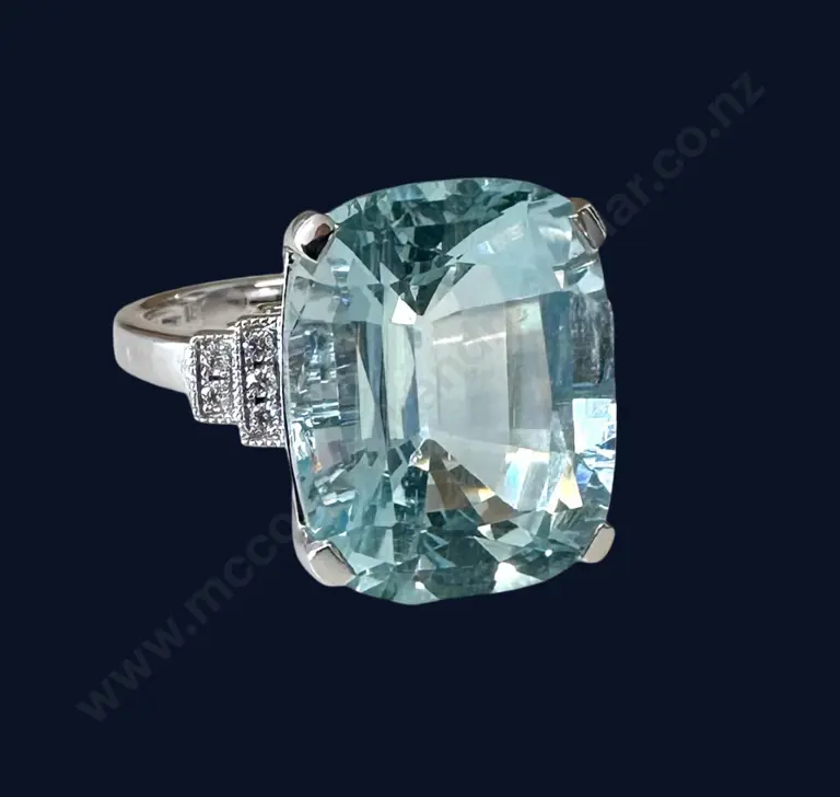 18ct White Gold Ring 11.66ct Aquamarine, 10 Diamonds 0.066ct, TW7.63gms, valuation $14000 Estimate: $3,000 - $5,000