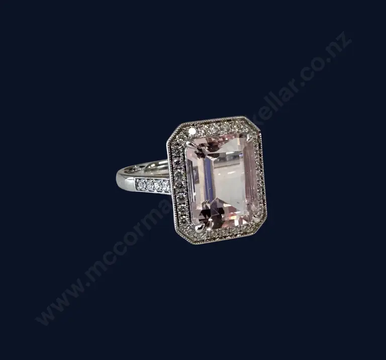 18ct White Gold Ring, 3.8ct Morganite, 36 Diamonds, 0.36ct, TW5.252gms, Valuation $7500 Estimate: $2,800 - $4,000