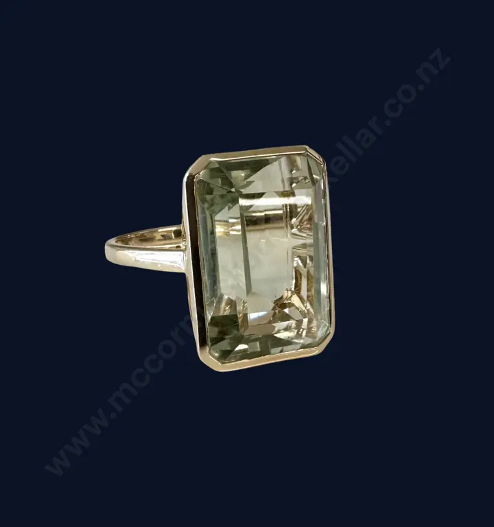 9ct Gold Ring, 20.22ct Green Amethyst, TW8gms, Valuation $2200 Estimate: $800 - $1,500