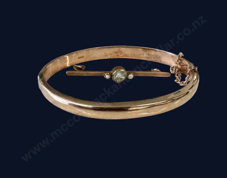 9ct Gold snap Bangle and Bar Brooch (no Pin), TW10.3gms Estimate: $500 - $1,000