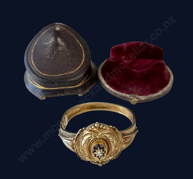 Leather Cased Victorian Snap Bangle with Enamel insert and Starburst Seed Pearl Centre Estimate: $250 - $500