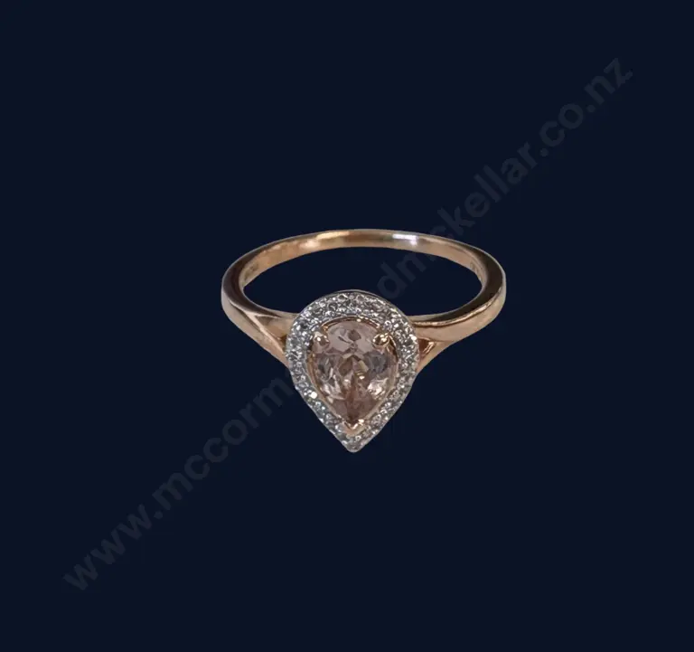 10ct Rose gold Morganite & Diamond Pear Shape Ring TW3.3gms rrp $1499 Estimate: $400 - $600