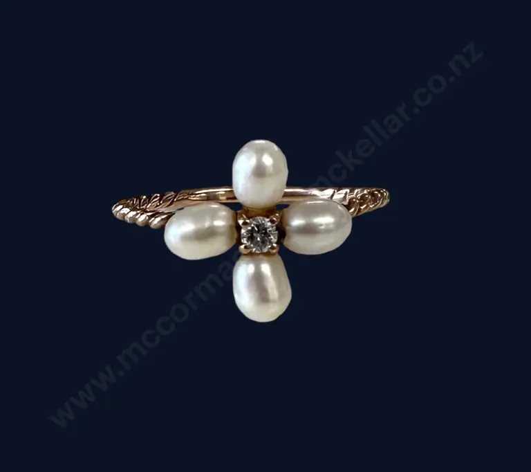 10ct Gold Diamond and Pearl Ring, TW0.9gms Estimate: $150 - $300