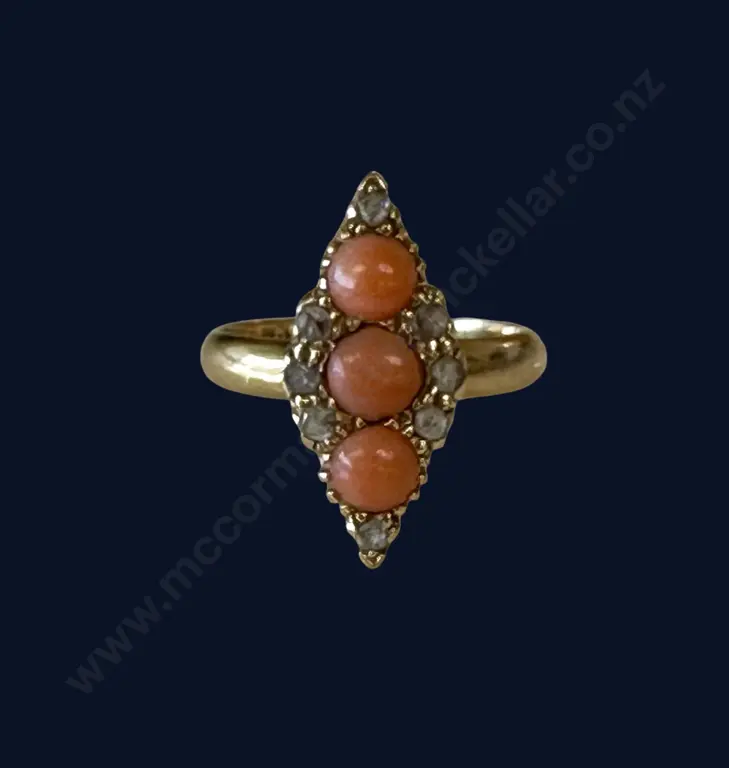 18ct Coral and Diamond Dress Ring, TW5.3gms Estimate: $600 - $1,000