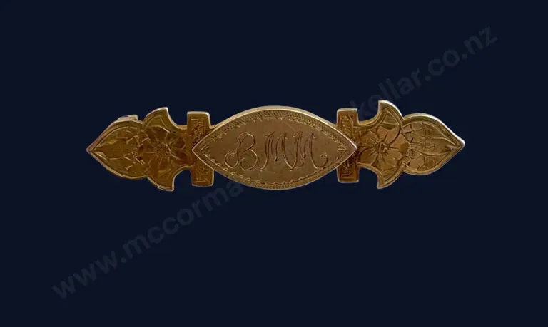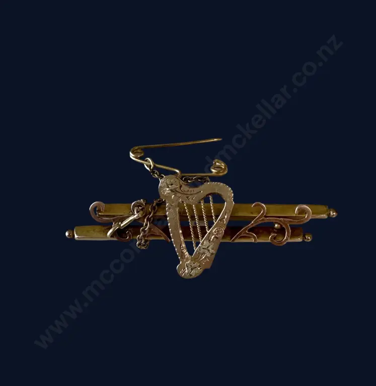 9ct Gold Harp Bar Brooch, TW11.9gms Estimate: $600 - $1,200