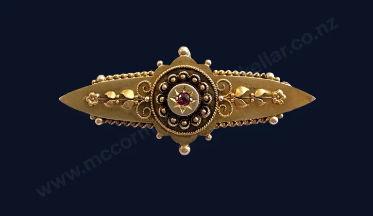 9ct Gold and Garnet Bar Brooch, TW 2.98gms Estimate: $150 - $300