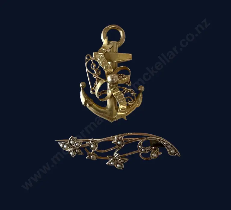 9ct Cased Gold Anchor Brooch and 9ct Gold Seed Pearl Bar Brooch, TW6.3gms Estimate: $300 - $500