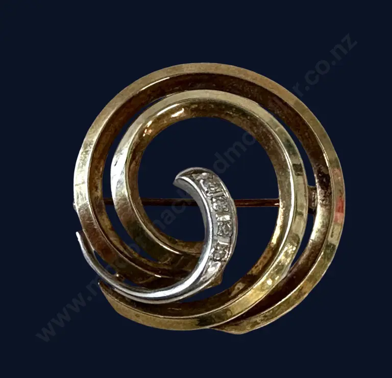 14ct Gold Round Diamond Set Swirl Brooch, TW 6.7gms Estimate: $500 - $800
