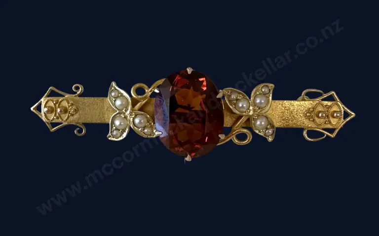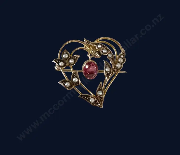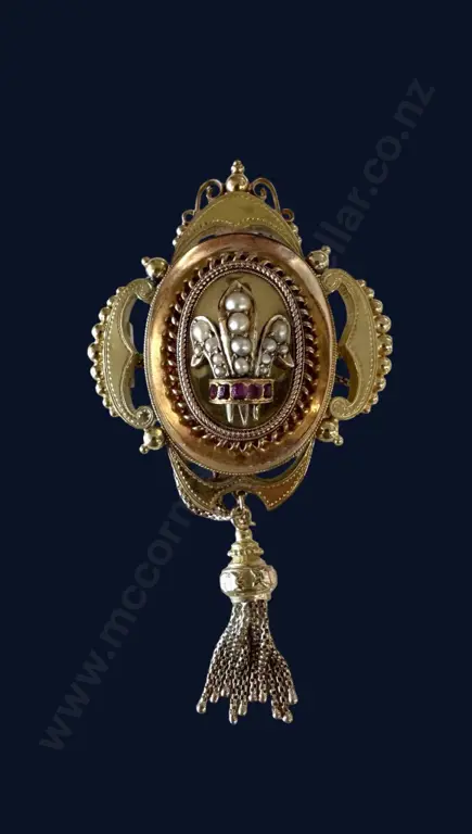 Early Victorian 9ct Gold Ruby and Pearl Tassel Brooch, TW20gms Estimate: $1,000 - $1,800