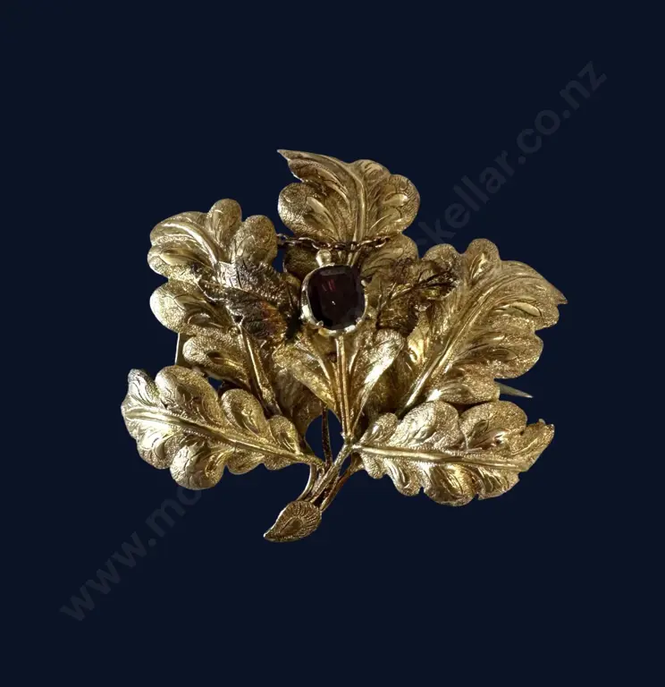 9ct Gold Victorian Leaf Brooch with Garnet (tested) TW8.9gms Estimate: $450 - $900