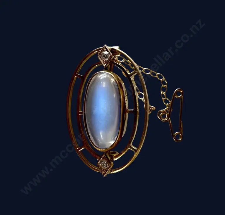 15ct Gold Moonstone and Diamond Brooch, TW 6.1gms Estimate: $300 - $600
