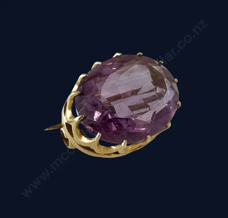 15ct Gold Brooch with Large Amethyst, TW 11.2gms Estimate: $500 - $1,000