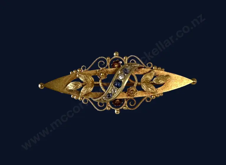 15ct Gold Sapphire and Diamond Bar Brooch, TW 3.5gms Estimate: $250 - $500