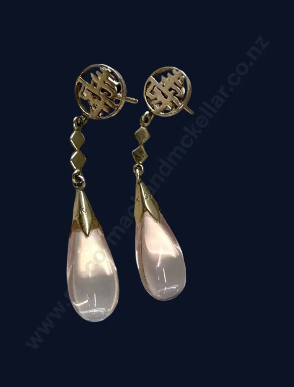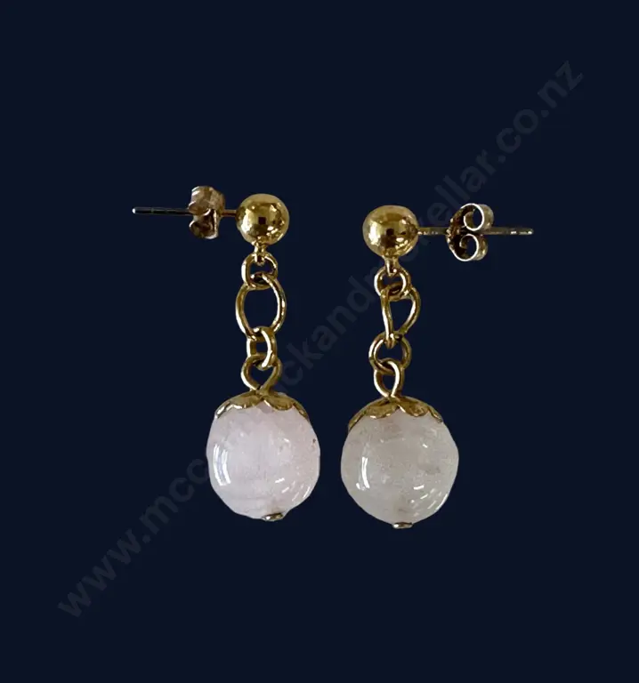 9ct Gold and Rose Quartz Drop Earrings, TW4.8gms Estimate: $200 - $400