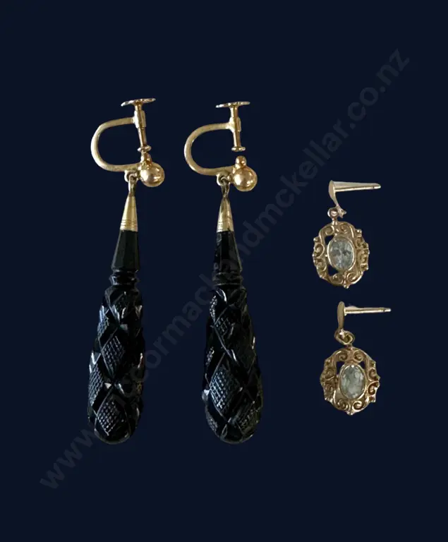 15ct Gold and Jet Drop Earrings and 9ct Gold and Topaz Drop Earrings Estimate: $200 - $400