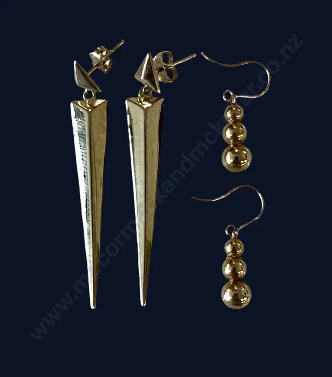 9ct Triangle Drop Earrings and 9ct Three Ball Earrings TW3.7gms Estimate: $250 - $500