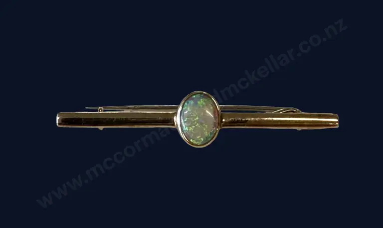 9ct Rose Gold Opal Bar Brooch, TW2.2gms Estimate: $100 - $200