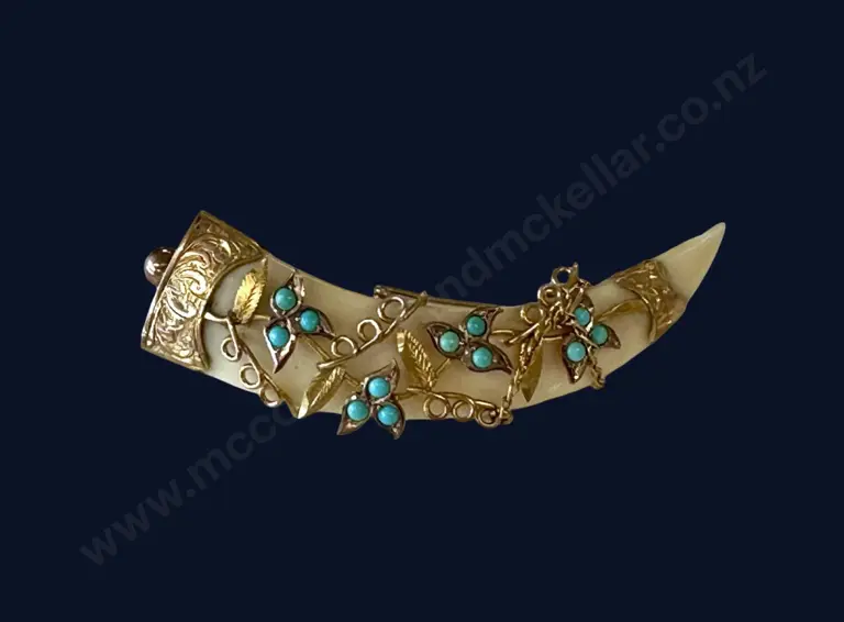 9ct Gold & Turquoise Mounted Tusk Brooch Estimate: $100 - $200