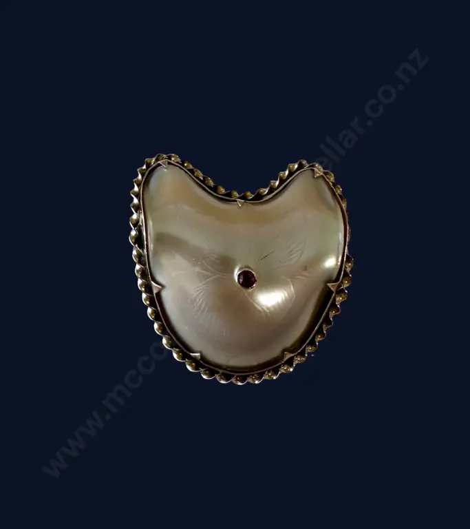9ct Gold Shell Brooch with Ruby, TW5.8gms Estimate: $200 - $400