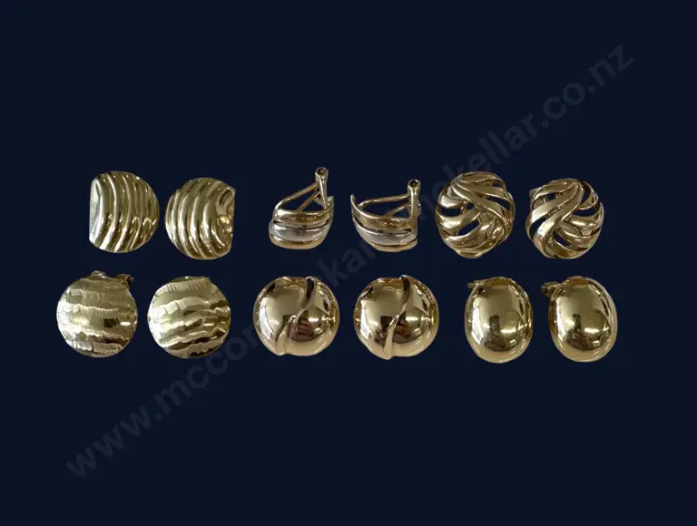 Six Pairs of 9ct Gold Earrings TW17.4gms Estimate: $800 - $1,400