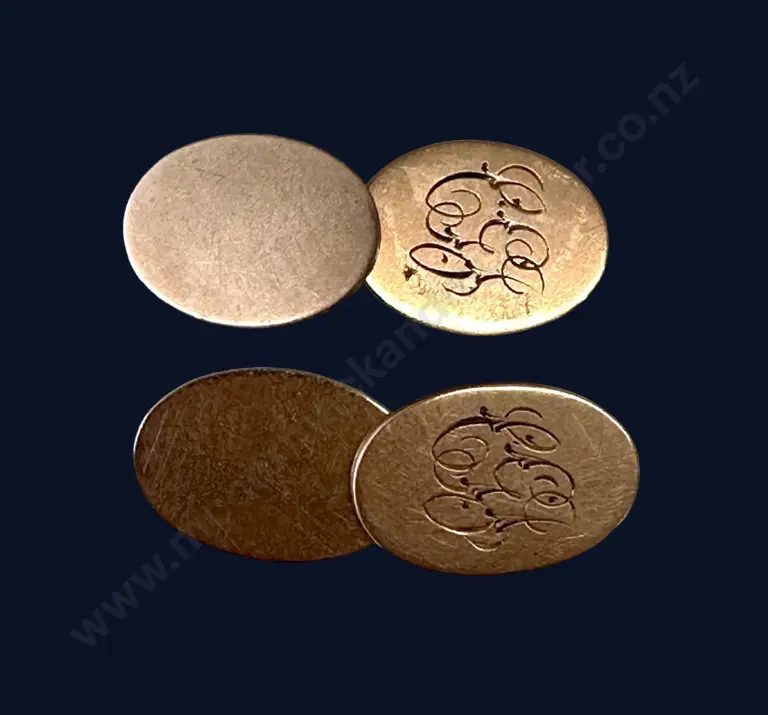 9ct Gold Oval shaped Cufflinks, TW 9.25gms Estimate: $400 - $700