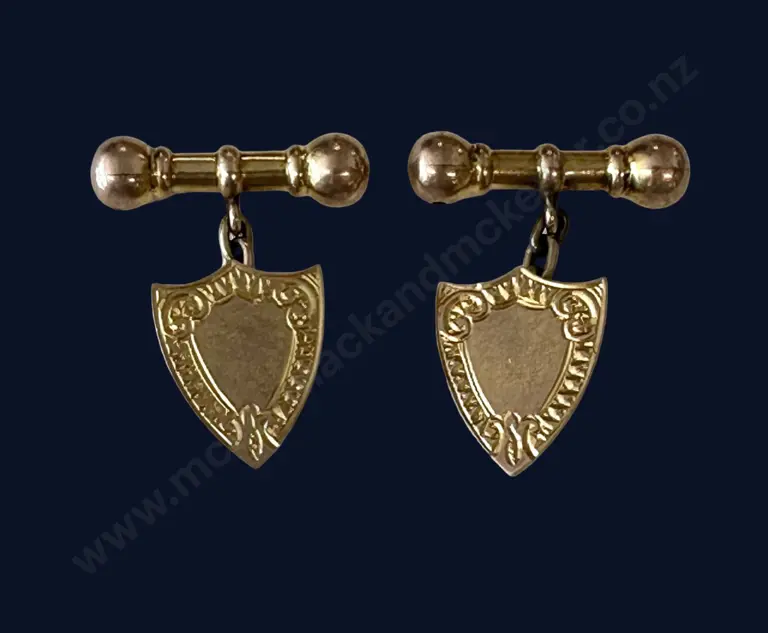9ct Gold Shield shaped Cufflinks, TW 5.48gms Estimate: $250 - $400