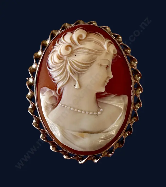 9ct Rose Gold Cameo Brooch TW6.7gms, Valuation $329.00 Estimate: $150 - $250
