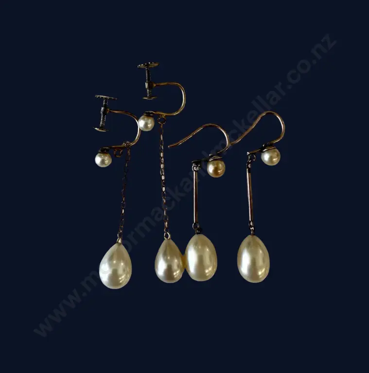 Leather cased 9ct Gold Drop Pearl Earrings (2) Estimate: $100 - $200