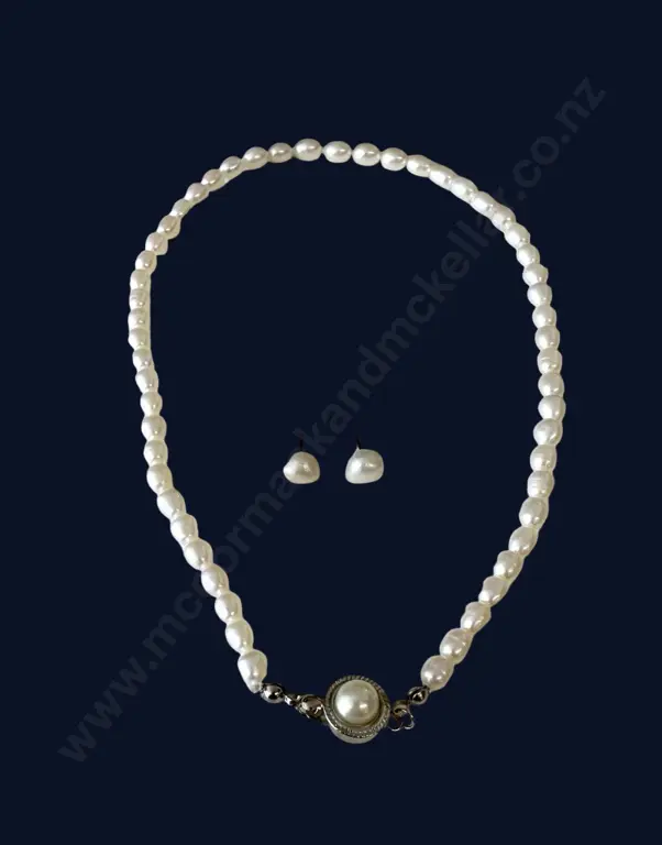 String of graduated Pearl Necklace, L42cm and matching Pearl Stud Earrings Estimate: $150 - $300