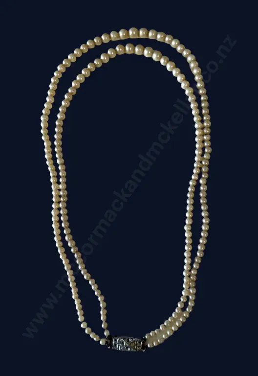 Cased set of double string Pearls with Sterling Silver clasp, L52cm Estimate: $150 - $300