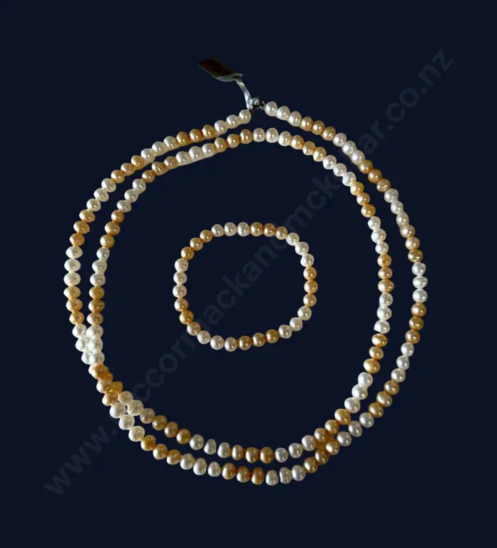 Champagne and White Pearl Necklace and Bracelet, L86cm, L14cm Estimate: $250 - $400