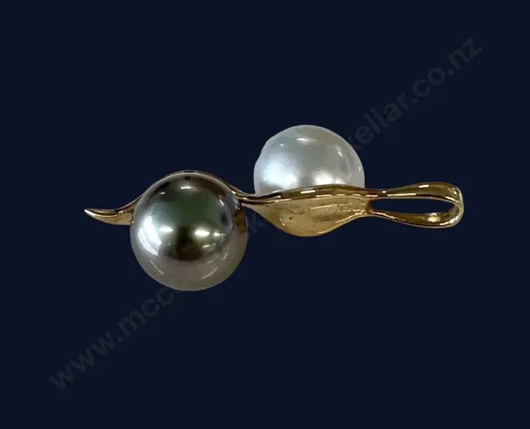 18ct Gold White & Black Pearl Pendant TW6.6gms, Valuation $665.00 Estimate: $200 - $400