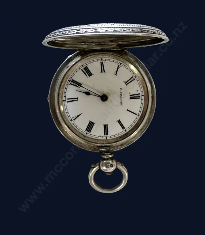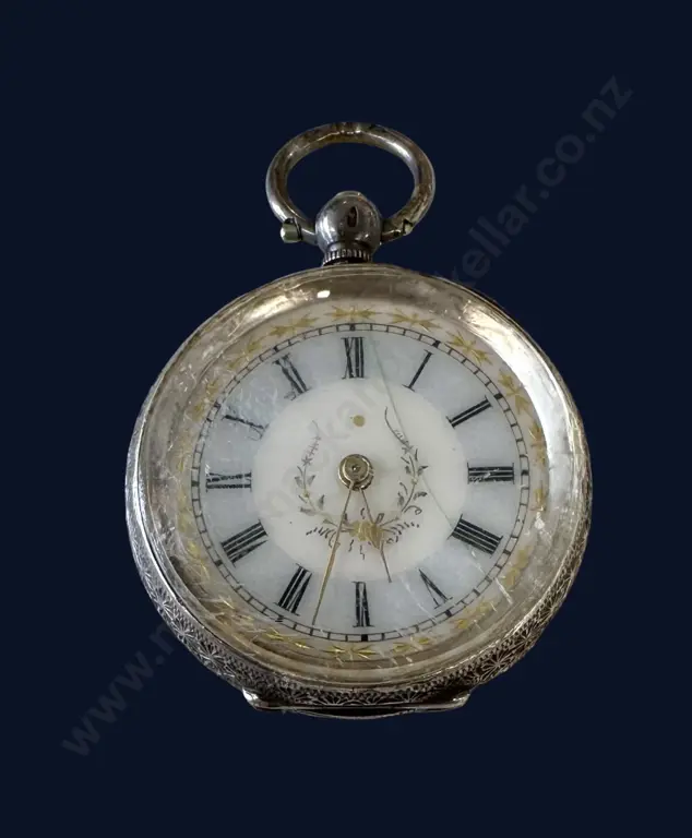 Sterling Silver Chased Pocket Watch, TW 38.2gms Estimate: $50 - $100