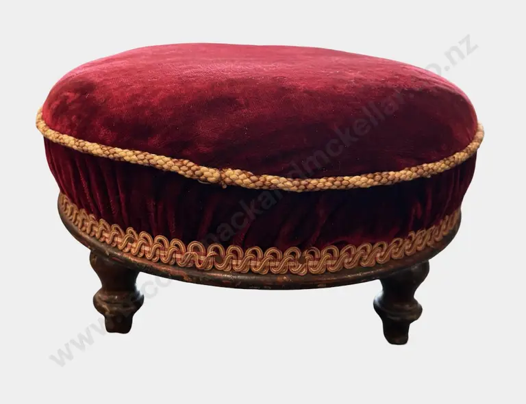 Burgandy Velvet Upholstered Foot Stool with Turned Legs H16cm