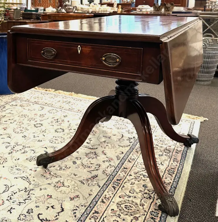 Mahogany and Fruitwood Stringing Single Drawer Pembroke Table, L160xW104xH75cm