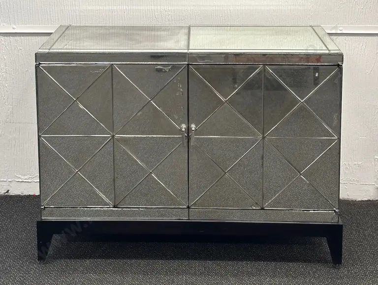 David Ross Mirror Panelled Two Door Cabinet on Ebony Wooden Base H79xL105xD50cmBINWR