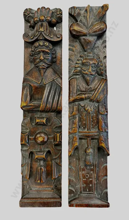 Pair of 19th Century Wall Mounted Carved Oak Figural Plaques L51cm