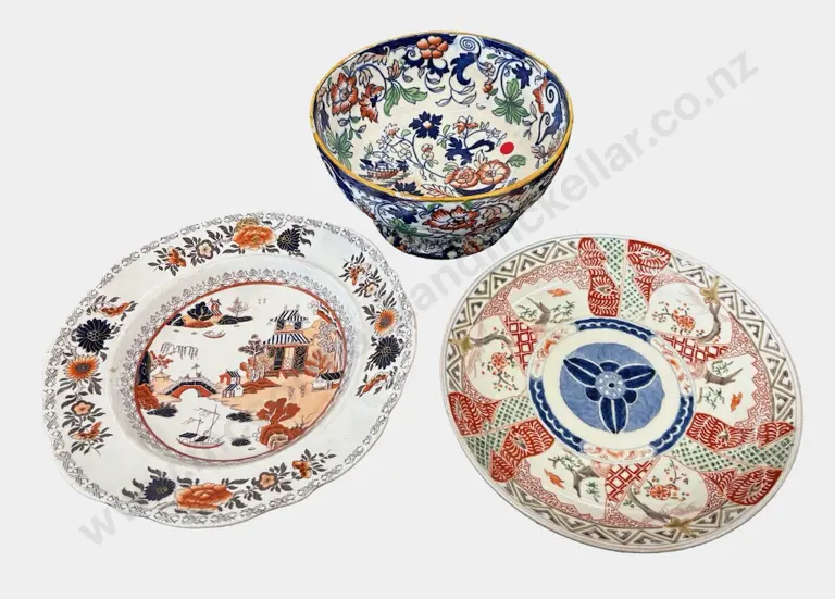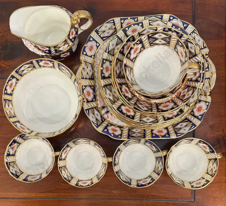 Aynsley Imari Style Teaset, six trios, cake plate, creamer and sugar bowl
