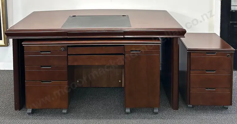 Mahogany Leather Inlaid Desk with pull out Companion and Three Drawer Filing Cabinet H76xL160xW84cm