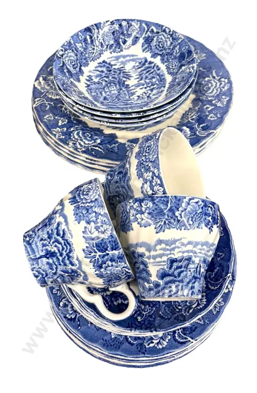 Woods Ware English Scenery Blue and White Four Place Dinner Set
