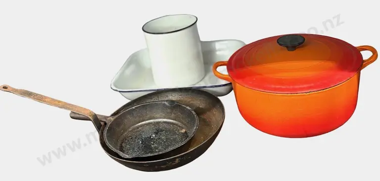 Cast Iron Skillets, Le Creuset Casserole Pot A/F, Enamel Dish and Jug