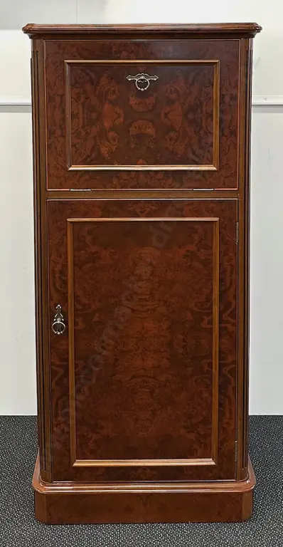 Burr Walnut Panelled Cocktail Cabinet with Fitted Interior and Brass Pulls H132xW59xD42cm