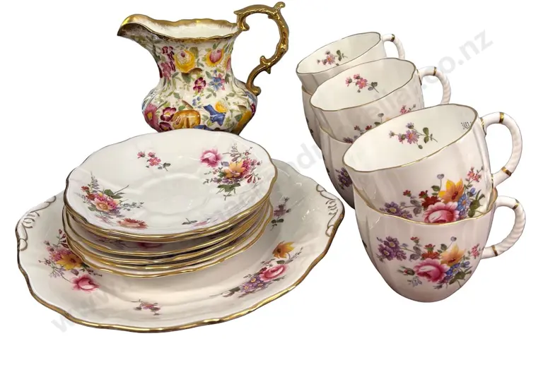 Royal Crown Derby "Derby Posies" 6 piece Teaset and Hammersley Jug