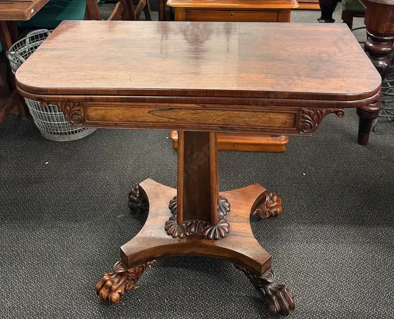 Rosewood Card Table on Footed Pedestal Base H75xW93xL92cm