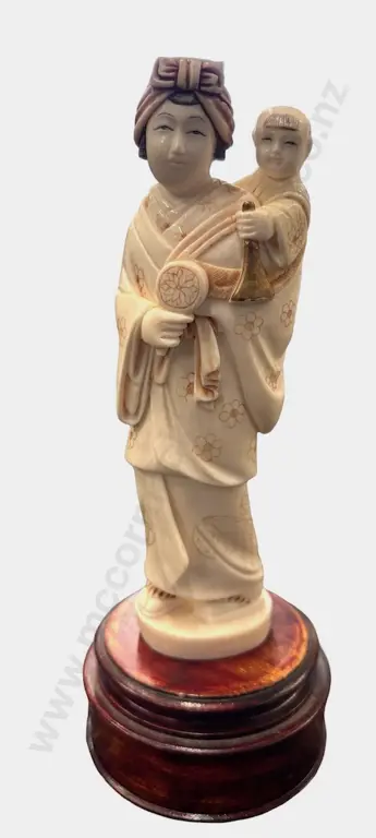 Japanese Ivory Statue, Mother and Child H28cm including stand