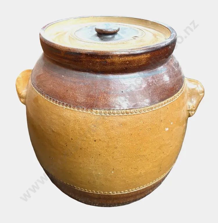 Large Stoneware Two Handled Lidded Urn, H28cm Dia29cm