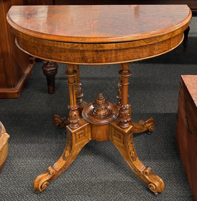 Flame Mahogany Card Table with Ornately Carved Four Point Base H74xD89cm