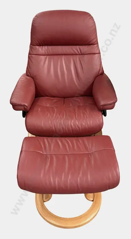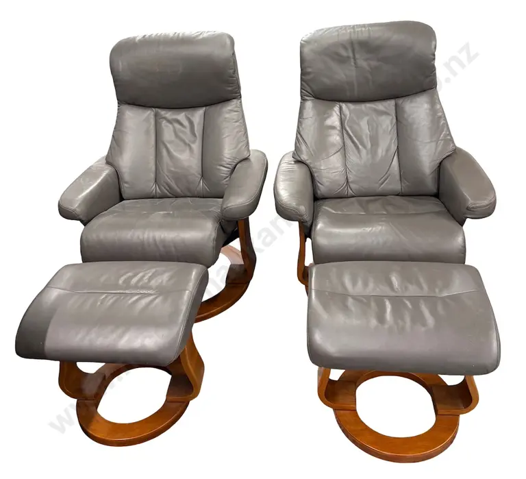 Pair of Gray Leather Zedere Reclining Chairs with Footstools