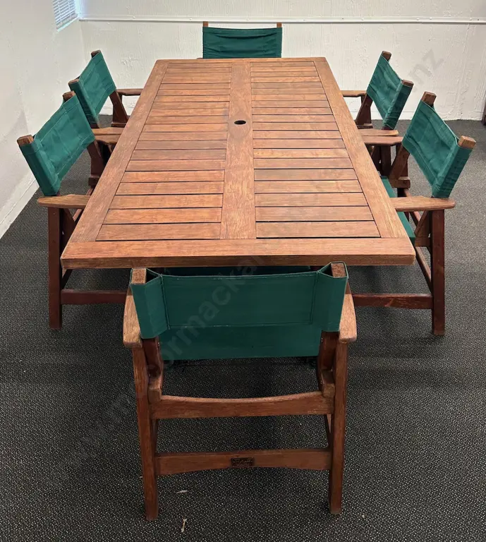 Eden by Danske Mobler 6 Seater Wooden Slated outdoor table with 6 canvas backed chairs
