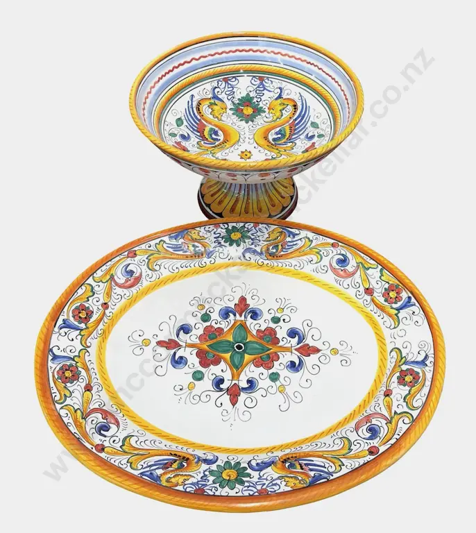 Corso De Fiori Italian Hand Painted Platter and Footed Bowl L43cm, H19cmxD28cm